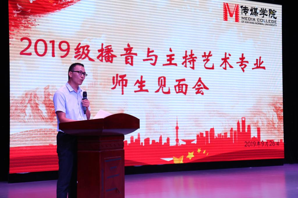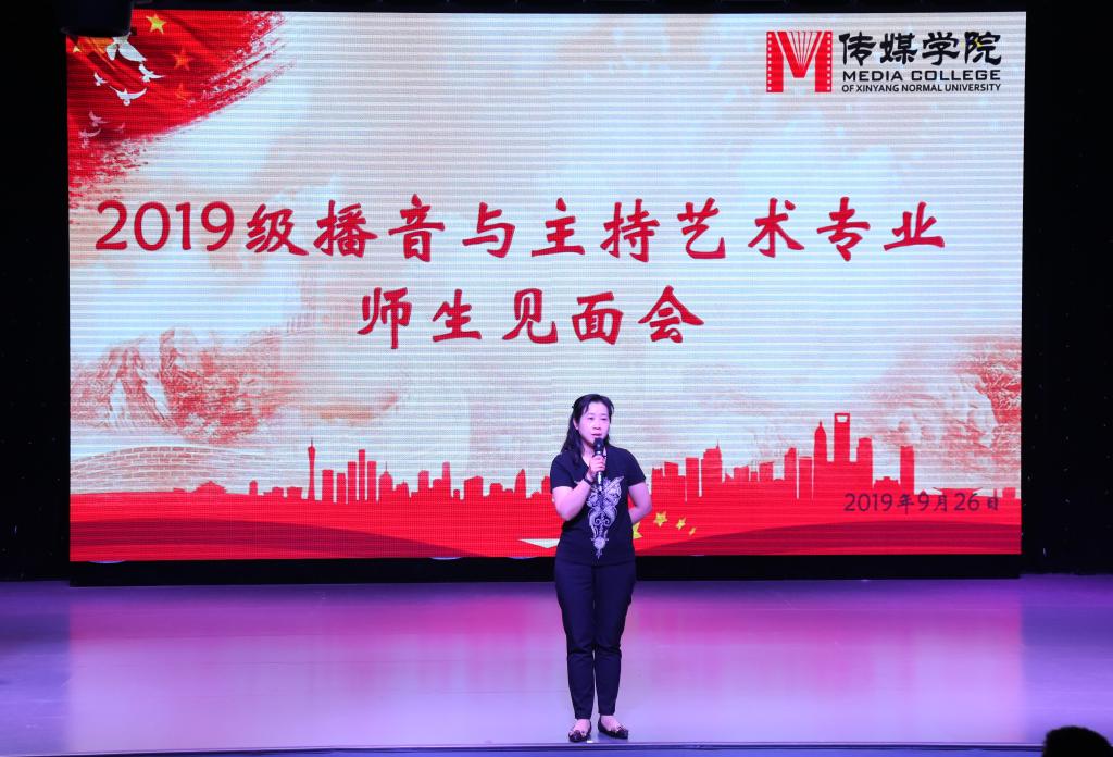 9月26日,2019级播音与主持艺术专业师生见面会在社科楼演播厅举办。经理焦素娥,副经理刘想如,教学秘书郜扬,播音主持系主任张世海博士,副主任张衡、张杰及全体教师参加见面会。见面会主题是认识专业老师,了解学习内容,做好学习规划。见面会由张杰主持。
