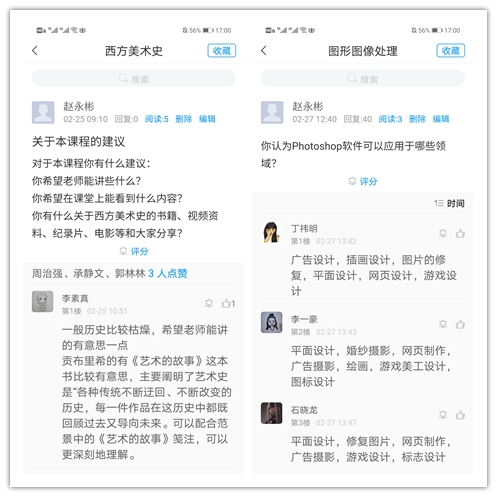 开课之后,情况比我预想的要好。大部分同学都能提前学习录课视频,准时签到,积极参与话题讨论、调查问卷、测验,按时完成作业。不过也有少数同学存在一些问题。我教授的一共有四门课程,共两个教学班。其中我是2016级动画班班主任,在疫情开始时我重新统计了班级成员的联系方式(QQ、微信、本人和家长手机号码)。在授课过程中发现有问题的同学,我会及时与之联系。如果网络通信手段没有回应,我就直接给该同学打电话,若电话无人接听,就和家长联系。班里有几个同学总是起不来,每次上课我都要挨个打电话叫他们起床上课。我希望他们即便不能认真主动学习,也最起码养成良好的作息习惯。