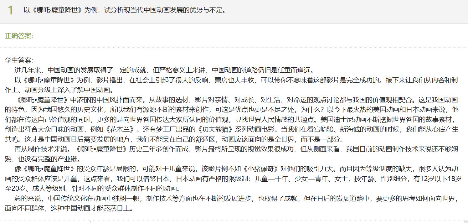 在网上教学初期,考虑到上课时段师生人数众多,可能容易由于网络拥堵造成超星学习通卡顿甚至崩溃,影响上课质量,所以针对2019级动画的《世界动画史》课程,栗老师采用录屏PPT讲授的方式。她提前两天将录屏视频传入学习通课程中,保证员工有充裕时间观看学习。同时她也根据课程内容准备问题,在课堂上引导员工针对视频讲授内容开展问题讨论。录屏激发了大家的学习兴趣,平时上课不爱发言的员工也能积极参与进来,认真思考后的回答往往能超出栗老师预期。在互动中启发思维,栗老师看到了员工们巨大的潜力。栗老师经常在学习通中布置与动画作品有关的课后作业,以此来督促员工带着问题去观赏动画作品。影视类史论课程的学习不能一直靠口头讲述,更需要员工认真观看学习作品,才能将理论与实践更好的结合,在掌握史论的同时具备动画人的基本视野。