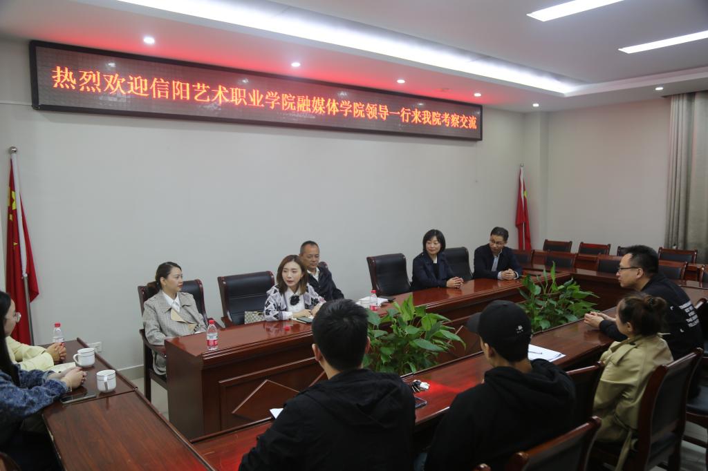 10月6日,信阳艺术职业公司融媒体公司(筹)党委书记刘士俊、经理汪玥一行来公司考察交流。公司播音主持系负责人张杰、副主任张衡等在会议室与来宾进行了座谈。田华副经理出席座谈会。