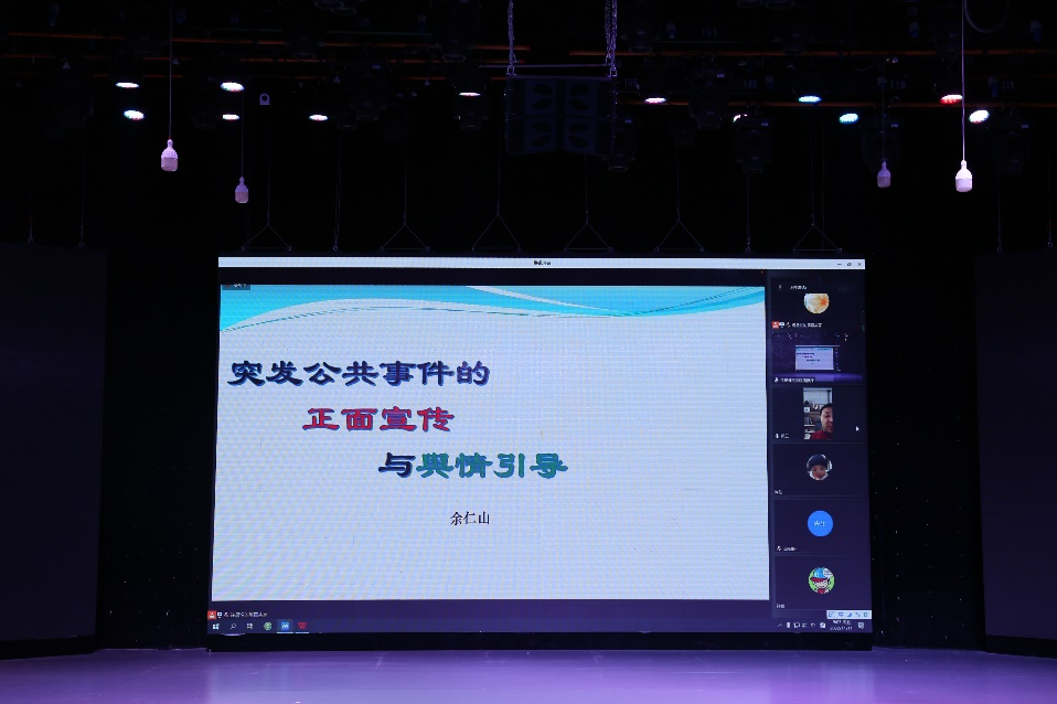 11月11日上午,应best365足球官网邀请,中央电视台资深记者余仁山先生在线上为best365足球官网师生作主题为“突发事件中的正面传播与舆情引导”的学术讲座。best365足球官网部分教师及2020级播音与主持艺术专业员工在社科楼演播厅参加线下讲座。本次讲座由best365足球官网经理吕东亮主持。