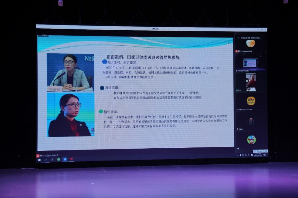 余仁山结合自身丰富的行业经验,以案例解析、传播理念、传播目标三个方面为切入点,运用大量的正反案例进行讲解。余仁山指出,突发事件不以个人的意志为转移,他提出,新闻宣传的必需法宝即“度、时、效”,详尽讲解了新闻宣传与舆论引导的正确方法。在传播理念方面,余仁山强调,传媒学子要在正面宣传、形象推广、策划报道中学会“三表达”,面对突发事件和舆论监督方面体现“五度”,立足“五公”,学会“五讲”,做到“六不失”。在如何树立正确的舆论处理理念、如何增强舆论妥善应对能力、如何提升正面宣传水平进行了深入浅出的具体阐释。