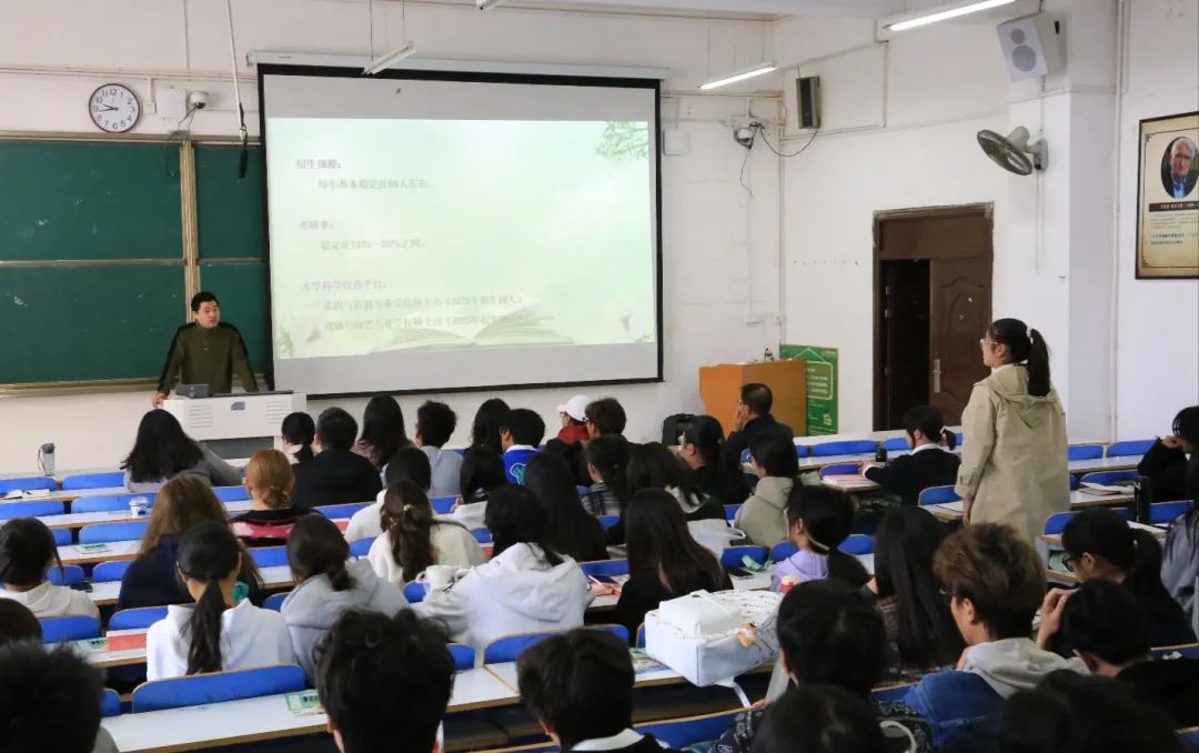 首先,段金龙对同学们的到来表示欢迎,并简单介绍了戏剧影视文学专业的团队力量、办学理念和教学特色,结合专业现状展示教学成果。他指出戏剧影视文学专业采用“与党建相互促进”的办学模式,从戏曲曲艺、话剧创作、影视文化三个方面进一步加深同学们对戏剧影视文学专业的认知。他强调核心课程和主要实践课程注重培养员工的剧本编写和创作能力,以团队协作的方式提升员工拍摄短片的技能,鼓励同学们积极参加社团,进一步充实自己。在师生交流环节,同学们踊跃发言,从老师们的解答中对戏剧影视文学专业有了更加深入的了解。