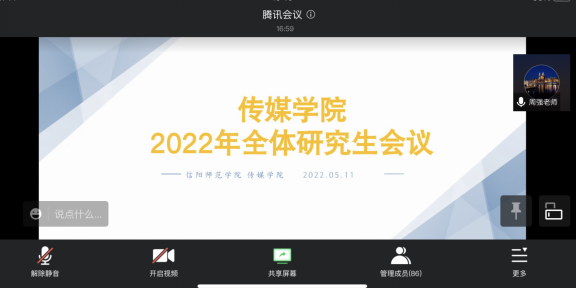 5月11日晚,为做好公司研究生疫情防控管理及公司产品工作,best365足球官网组织召开了2022年全体研究生线上会议。best365足球官网副经理周强、各研究生班主任及全体研究生参加会议。本次会议由副经理周强主持。