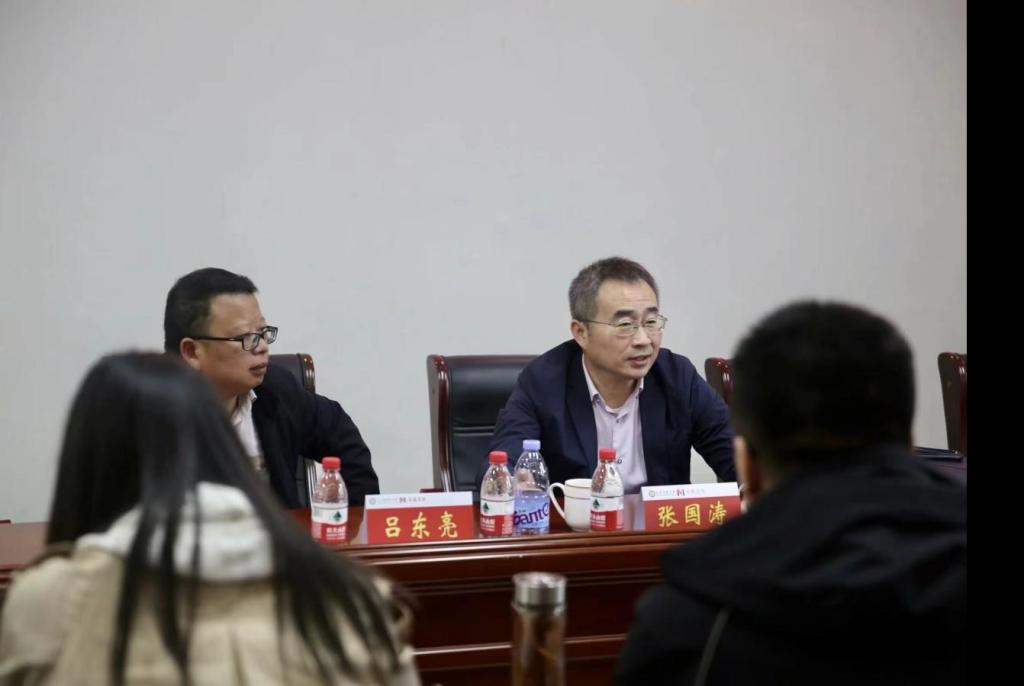 讲座结束后,张国涛教授与公司教师代表、广播电视专业研究生在公司会议室对学科期刊发展现状及教材出版等问题展开交流探讨,并针对师生提出问题一一解答。