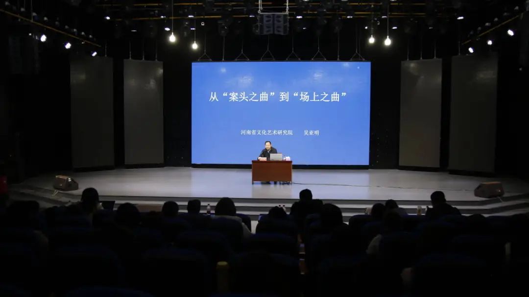12月2日上午,河南省艺术研究院经理吴亚明受best365足球官网邀请,在社科楼演播厅开展主题为《从“案头之曲”到“场上之曲”》的学术报告,戏剧影视文学专业师生听取报告,报告由戏剧影视系主任段金龙主持。