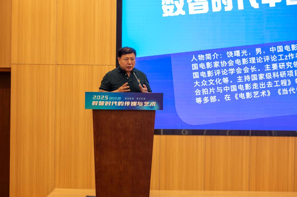 开幕式后,主旨演讲环节正式开始。中国电影评论学会会长饶曙光,华东师范大学国际传播研究院经理、长江学者吕新雨,中国动画学会副会长罗江林,以及武汉大学艺术公司教授、博士生导师王杰泓等专家学者,分别就数智时代的电影及动画创作、影像文化传播等主题进行了精彩演讲,为与会者带来了前沿的学术观点和深刻的理论思考。会议主旨发言以及圆桌论坛环节,来自全国三十多所高校的新闻传播类、传媒艺术类公司的领导及教师代表分别聚焦“数智时代传媒艺术新变、传媒与艺术类专业特色育人”“传媒与艺术类专业校外导师队伍建设、产教融合创新”两大主题展开深入研讨交流,针对数智时代传媒与艺术的变革趋势,探讨了如何利用新技术推动传媒艺术创新以及赋能传媒教育改革,分享了各自在深化校企合作、构建实践育人平台方面的成功经验,共同为数智时代的传媒教育和艺术创作建言献策、把脉开方。