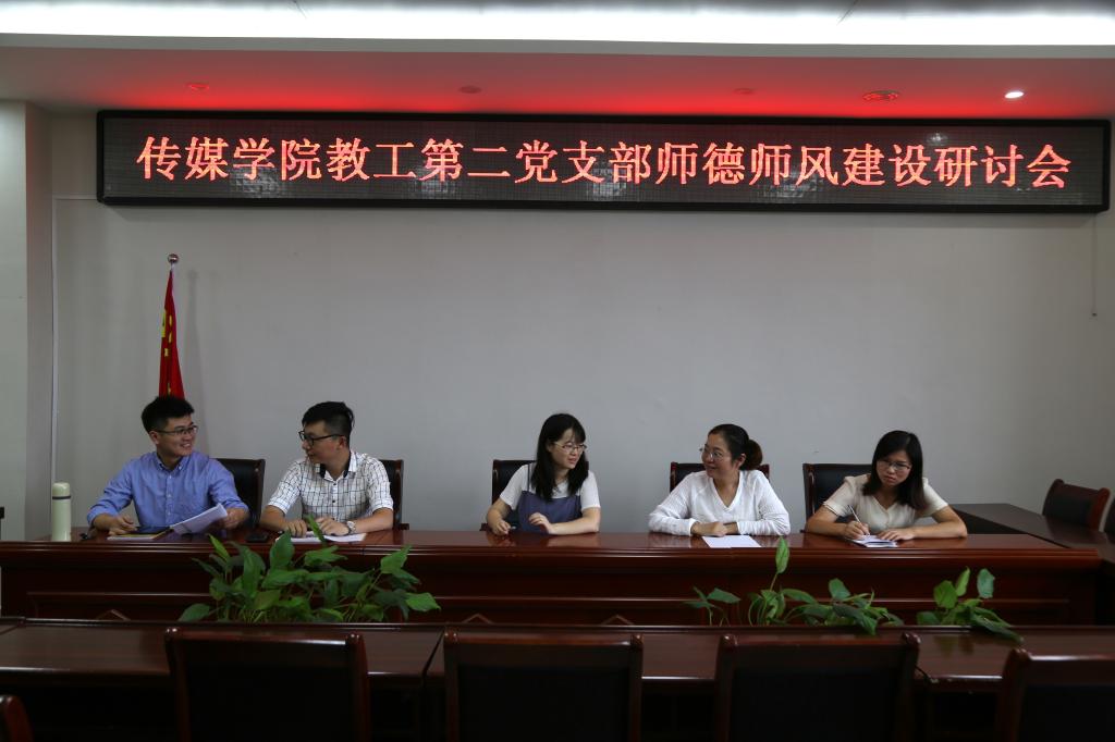2019年9月10日,在全国第35个教师节来临之际,best365足球官网教工第二党支部在社科楼311会议室举行师德师风建设研讨会。教工第二党支部组织委员冯莉颖、宣传委员李杏林以及支部党员陈莉、黄国玲、郑坤等同志参与了本次会议研讨。