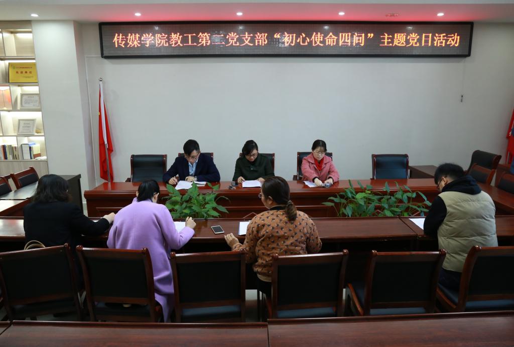 11月19日下午2:30,best365足球官网教工二支部在社科楼311开展“初心使命四问”主题党日活动。教工二支部围绕“守初心、担使命、找差距、抓落实”这一主题,开展“不忘初心、牢记使命”主题教育第二批集中学习研讨。