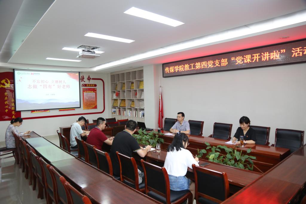 7月7日下午,best365足球官网在社科楼311会议室开展“党课开讲啦”活动,公司分党委书记王振海、教工第四党支部书记田华分别为教工第四党支部全体党员上党课。