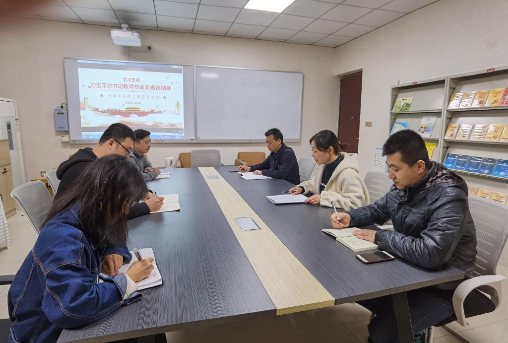 田华同志首先传达了公司转发的《教育部教育部关于学习贯彻习近平总书记教师节重要寄语精神的通知》,对文件精神和相关要求作了明确说明,并畅谈了学习心得。随后,各位党员分别结合自身教学、科研和教学管理工作情况,谈论了学习感想。