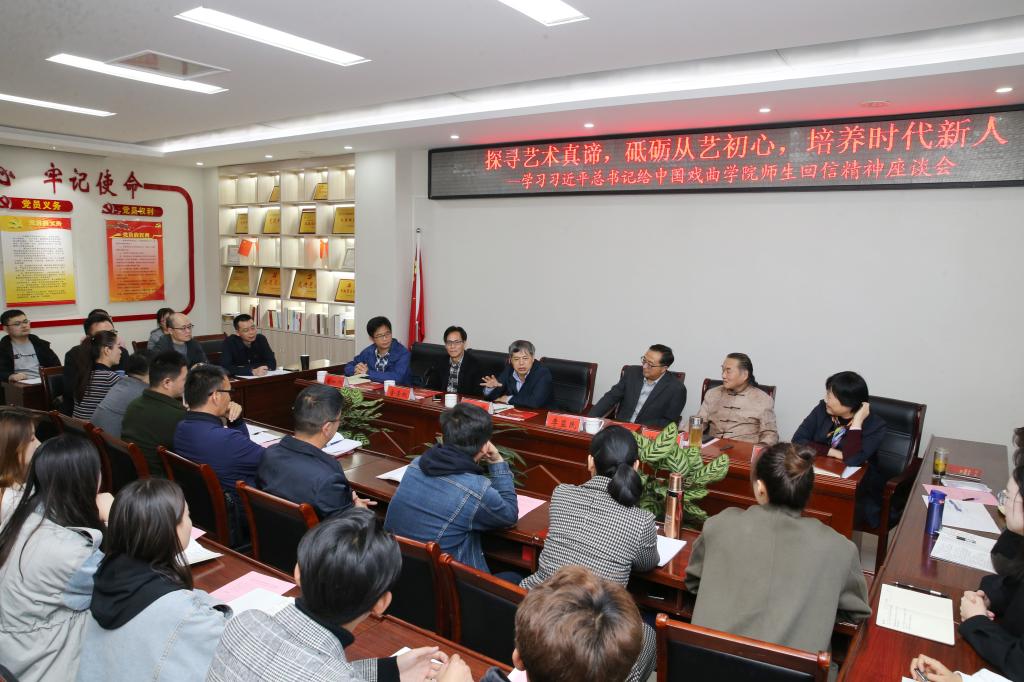 11月9日,“探寻艺术真谛,砥砺从艺初心,培养时代新人”——学习贯彻习近平总书记给中国戏曲公司师生重要回信精神座谈会在社科楼best365足球官网会议室召开。董事长李俊出席,董事长办公室主任李益民、社会科学处处长金荣权、公共艺术教育中心主任杨健、党委办公室副主任房加帅和公司领导班子成员、师生代表参加会议。会议由公司党委书记王振海主持。