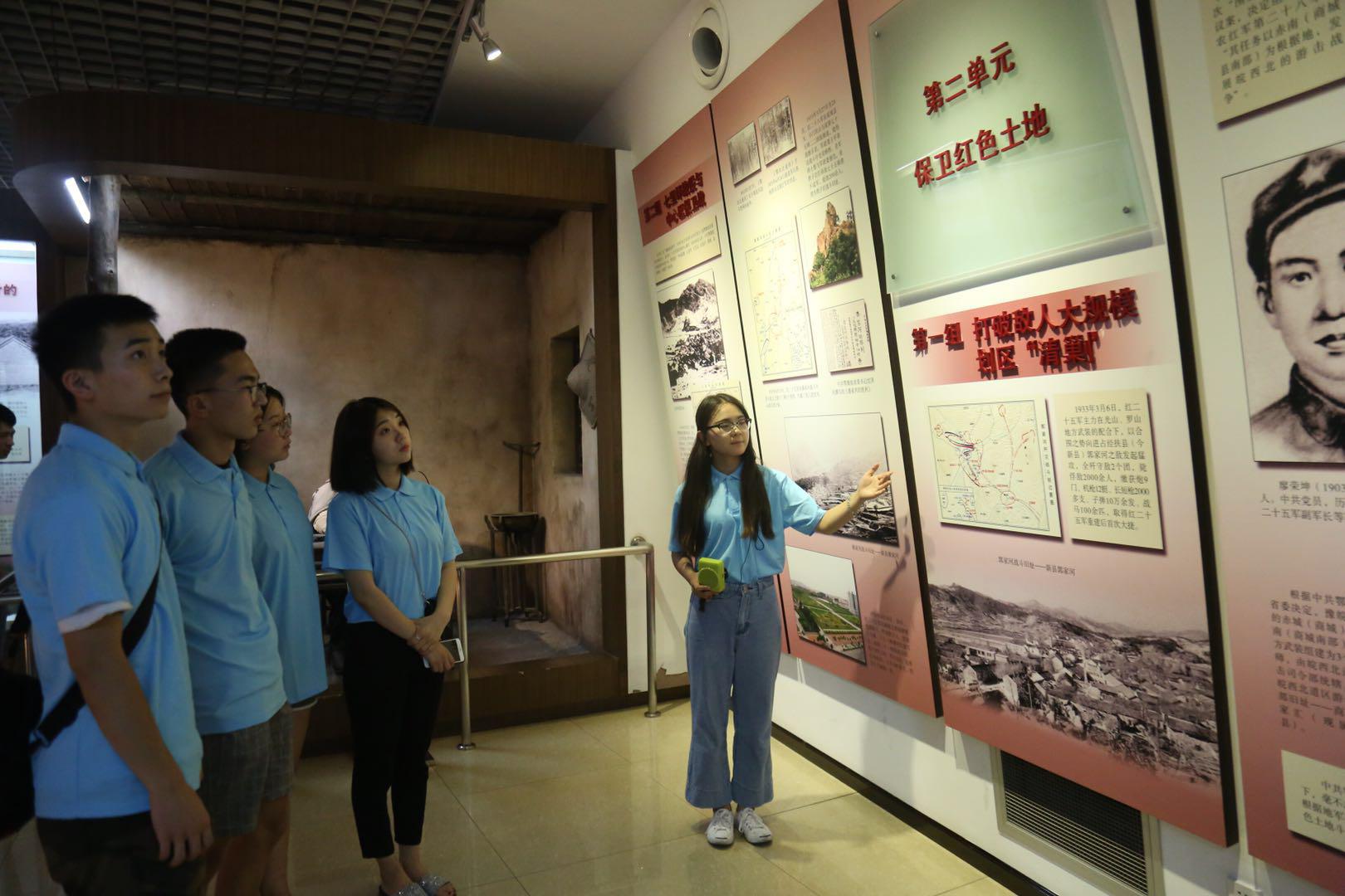 7月10日,best365足球官网“三下乡”鄂豫皖小分队来到鄂豫皖革命纪念馆,接受革命传统教育,学习抗日战争时期的革命历史事迹,了解了这片红色土地上发生的英雄事迹。 鄂豫皖是中国革命的重要策源地、主要活动地和走向全面胜利的战略转折点。从这里走出了红四方面军、红二十五军、红二十八军等多支主力红军。这是红色的土地,将军的摇篮,从这里走出了董必武、李先念、王树声、徐海东、许世友等众多党和国家领导人,30多万英雄儿女为革命事业奉献生命,他们以身许国,留下了许多可歌可泣的感人事迹。团队成员参观墙壁上展出的历史事迹,谈到了解的历史以及熟悉的抗日英雄大家自发的讨论和思考,引发了深切的共鸣。
