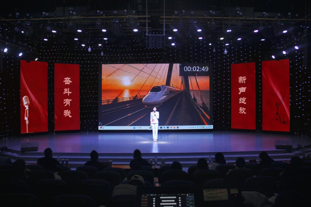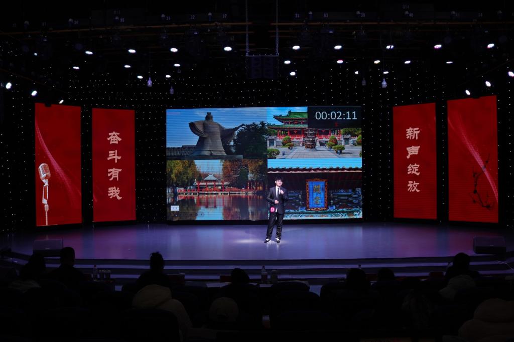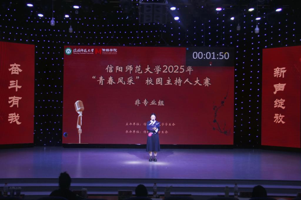 首先登台的是非专业组选手,他们以创意为笔,书写热爱篇章。自备稿件朗诵时,文公司马林青咏诵家国情怀,商公司邢诗宜诠释大别山精神,教育科学公司李昱霏借文字传递成长力量。自备主持环节,医公司董兵航带来的《大美许昌》,带领观众“云游”许昌,教育科学公司姜可欣在主持《历史运动会》节目中把投壶、蹴鞠等传统运动讲得妙趣横生。多元表达让赛场新意盎然。