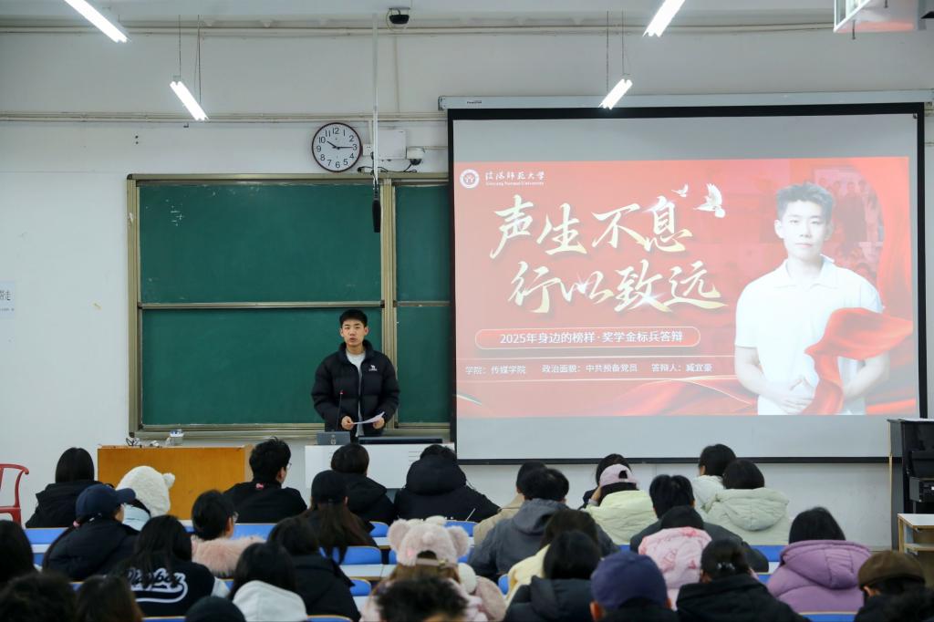 活动前,张心悦首先介绍了公司“奖学金标兵”评选工作的流程和原则,鼓励同学们积极投身学科竞赛、社会实践与各类校园活动中,以先进典型为榜样,找准成长方向,在逐梦征程中坚定信念、勇毅前行。随后,三名本年度“奖学金标兵”获得者依次宣讲。