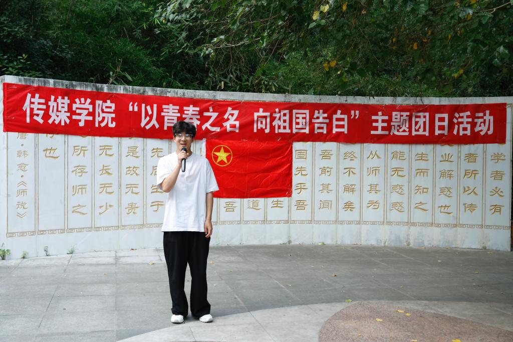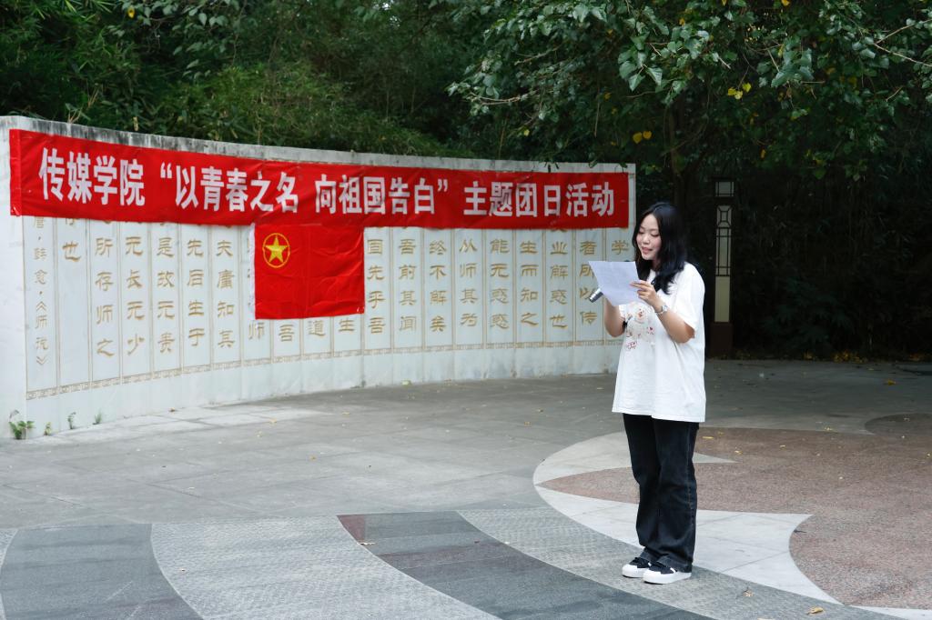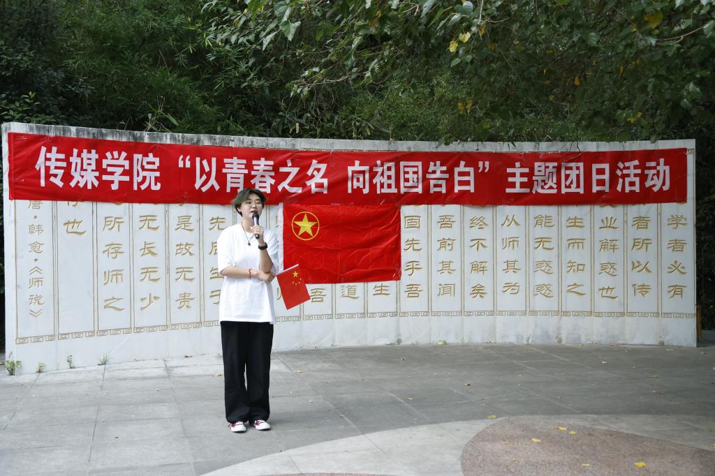 24级新生代表周寒薇发表了《礼赞七十五载峥嵘岁月》主题演讲,讲述了祖国七十五年的历史波澜壮阔、中华民族自立自强的伟大征程以及人民追求幸福生活的壮丽画卷。