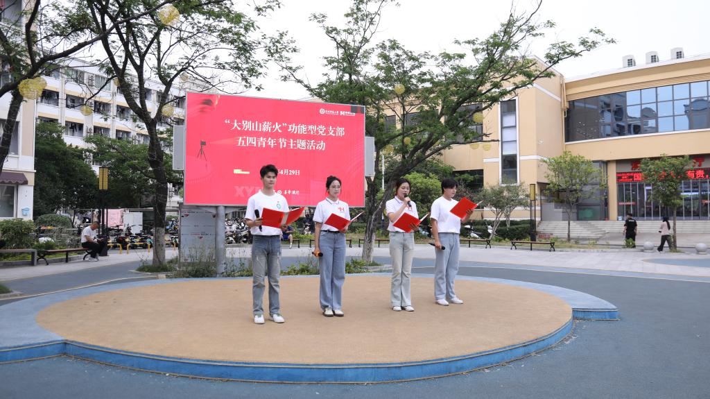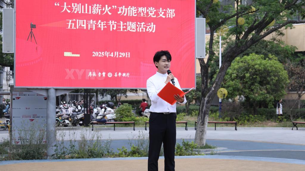 来自景明社区1、2号楼7个公司的员工党员代表向党支部报到,并重温了入党誓词。在场员工通过“讲、舞、诵、唱”形式,讲述了大别山革命人物罗明榜的故事,演绎了原创红色舞蹈《五月红杜鹃》,朗诵了红色诗歌《五四精神 传承有我》、合唱了爱国歌曲《我爱你,中国》,用新时代青年的声音和力量传承大别山精神和五四精神。