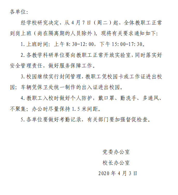 关于教职工正常到岗上班的通知