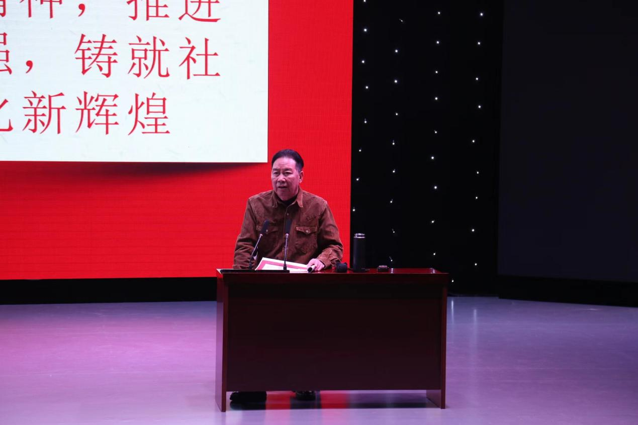 2023年12月29日上午,应河南省人文社科重点研究基地中原戏剧影视文化研究中心邀请,中国戏剧家协会副主席、中国文联全国委员会委员、河南省戏剧家协会主席李树建在社科楼演播厅作主题为“戏如人生,勇毅前行”专题讲座。河南省人文社科重点研究基地中原戏剧影视文化研究中心2023级戏剧影视文学专业全体员工参加,本次讲座由经理吕东亮主持。