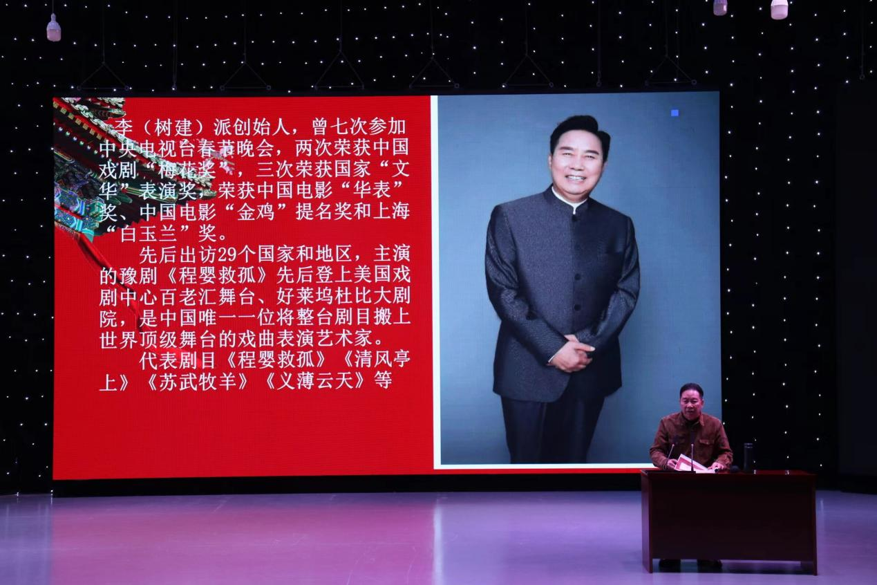 讲座伊始,通过观看李建树戏曲艺术中心制作的豫剧短片,让同学们简单了解豫剧。李树建指出,此次讲座是在学习贯彻落实二十大精神,推进文化自信自强。他表示,自己先后到达31个省市和自治区,出访29个国家和地区进行豫剧演出,以自身经验希望可以给同学们带来启发。李树建深入学习贯彻二十大精神,坚持为人民服务,为社会主义服务,坚持以人民为中心的创作向导,并表示,百姓想看什么就演出什么。他坚守中华文化立场,践行总书记的教导,将中原文化带出国门,走向世界。