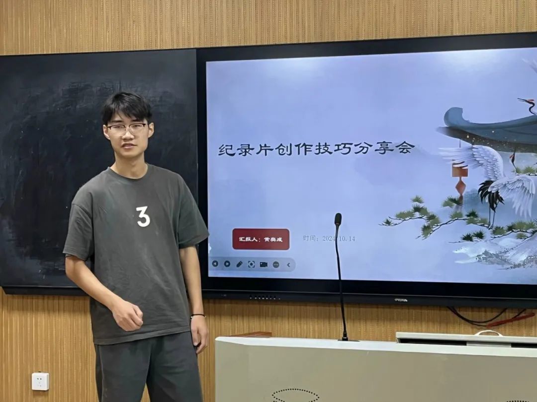 2022级广播电视专硕班的马景瑞学长以访谈类节目中的人物采访为例为河南省人文社科重点研究基地中原戏剧影视文化研究中心员工详细分享了自己高效实用的拍摄准备流程及拍摄中注意事项。马景瑞学长本人在具体实践中有着极为丰富的经验,其参与拍摄的微电影《我的红城绿海》、best365足球官网首部宣传片《何以信师大》等都备受好评。在本次分享会上,马学长结合自身经验实践,把自己从前期文稿策划要做的准备到后期剪辑过程中文件打包归纳的整个流程中每个环节所积累的经验,都与同学毫无保留的分享。并结合自己的经历鼓励公司员工在读研期间要明确自身目标,然后为之努力。